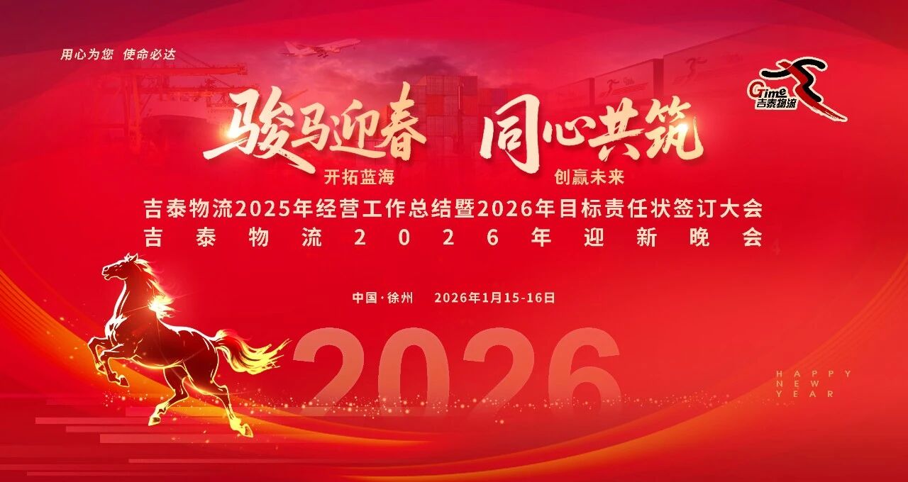 为全面复盘2025年经营成果,科学部署2026年发展蓝图,1月15日至16日,吉泰物流2025年经营工作总结暨2026年目标责任状签订大会在徐州隆重举行。公司董事长李尔涛、高管团队、各系统及分(子)公司负责人齐聚一堂,共同回顾奋斗历程、明确战略方向,凝聚起推动企业高质量发展的强大合力。